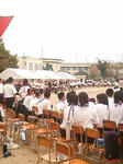 お友達のお店のガラスのドア越しに前の道が見えるのですが、中学生が帰り始めた。